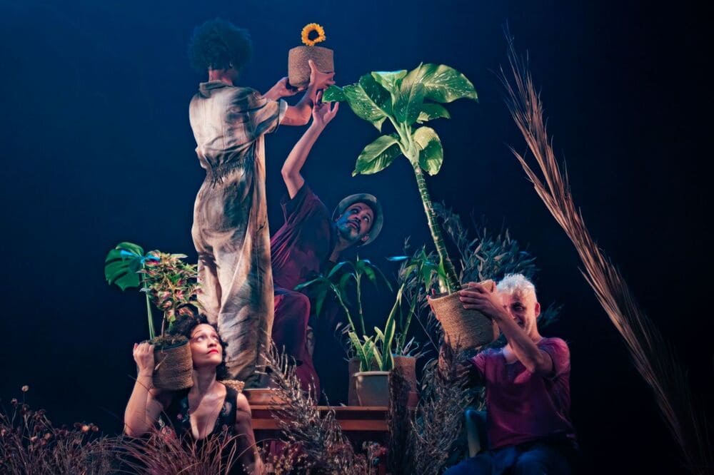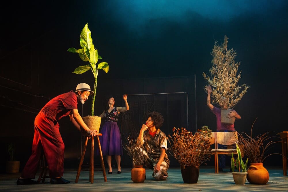 “Um dos conceitos do nosso projeto era que as quatro perspectivas de direção mantivessem a diversidade de suas assinaturas, de linguagem e de estética, de modo autônomo, diferentemente de uma direção compartilhada. Isso nos provocou, tanto no que se refere à atuação quanto à proposição de cenário, figurino, iluminação”, contextualiza Zé Walter Albinati, assistente de direção da montagem.