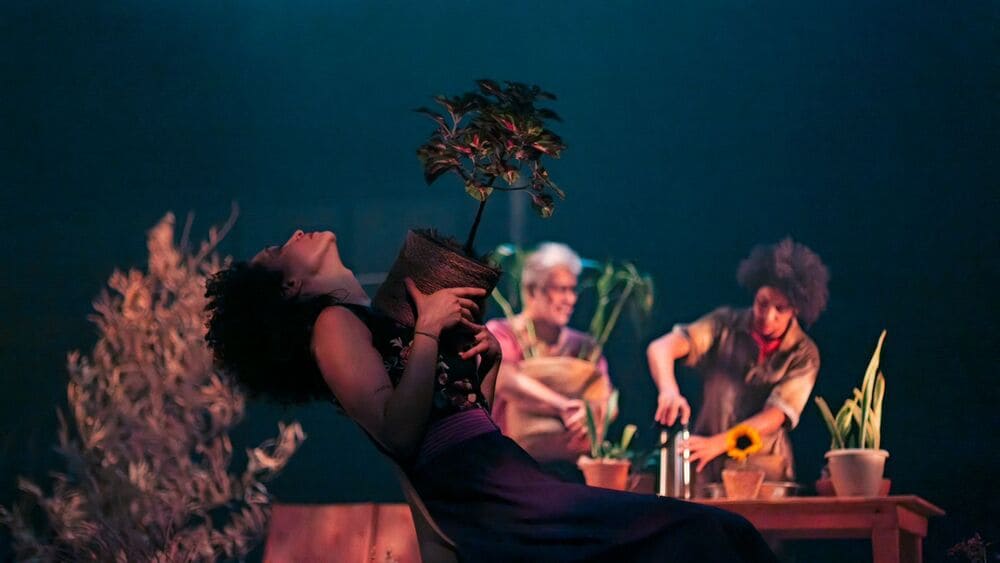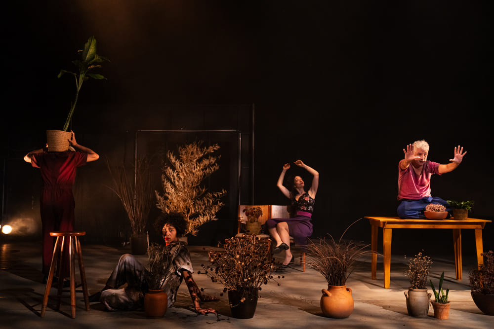 E, no processo de criação deste novo trabalho, a Companhia mineira não só experimentou outros métodos em sala de ensaio, como também convidou novas parcerias. Renata Paz, atriz de vasta trajetória na pesquisa dos teatros negros na cena belo-horizontina, veio, ao lado de Joyce Athiê, engrandecer o processo e a cena.