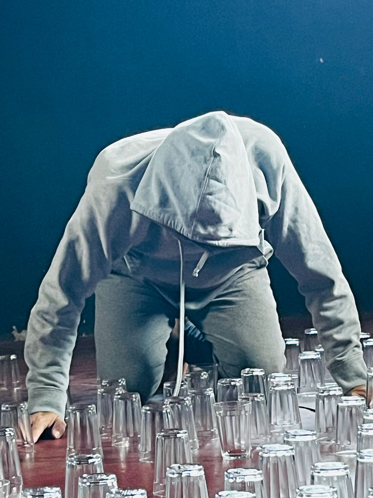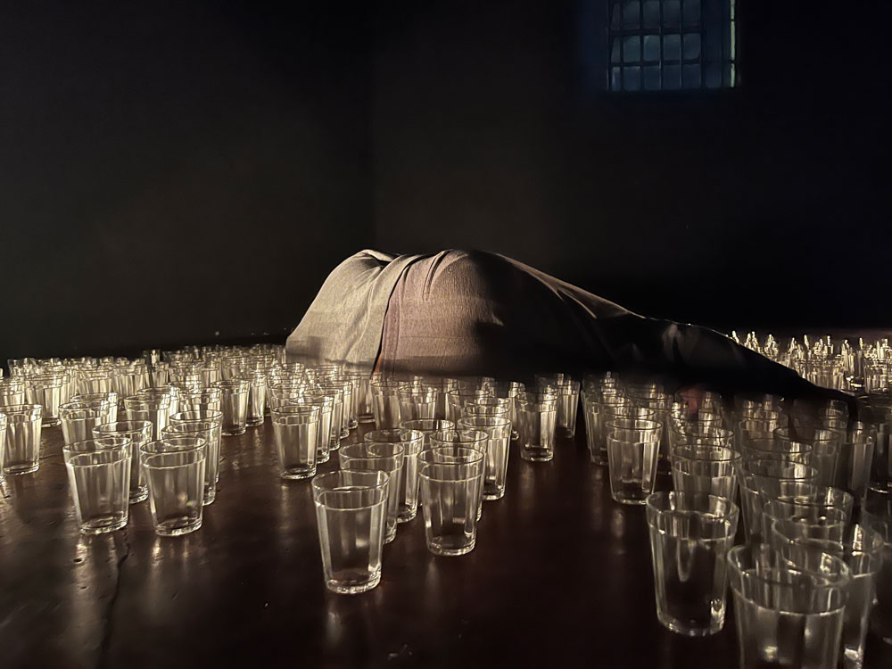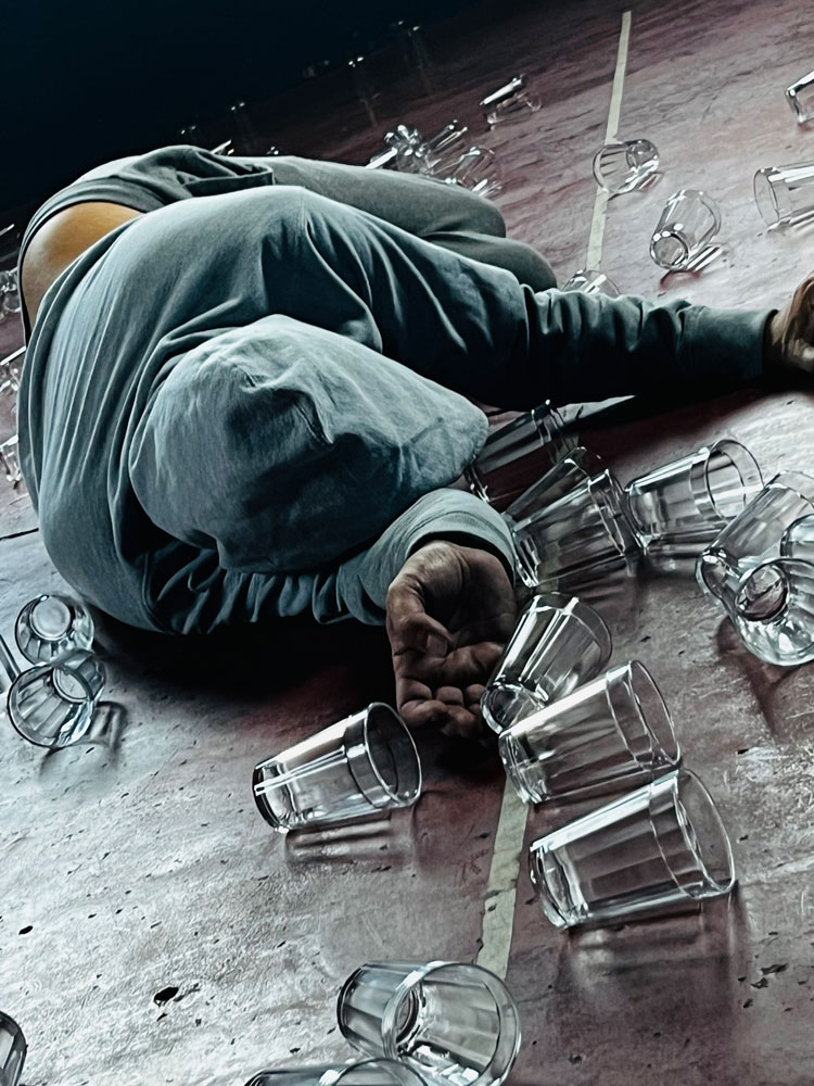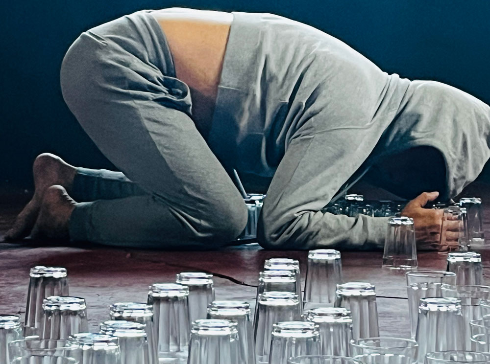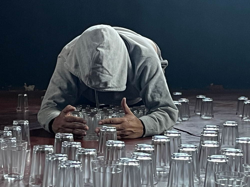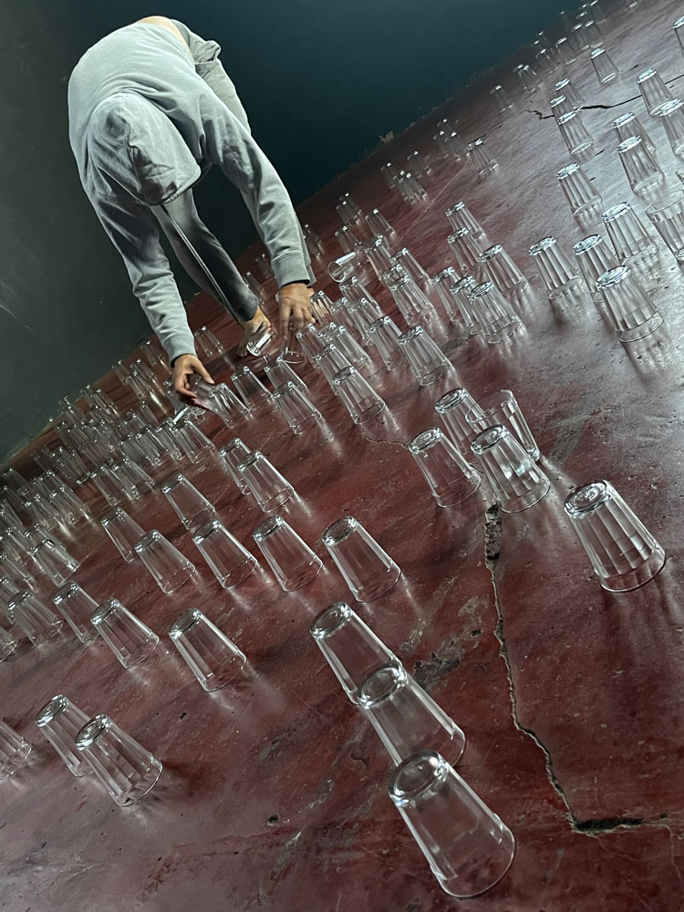 Desencontros, etarismo dentro da comunidade LGBTQIAPN+, e solidão foram propostas que Cláudio apresentou aos convidados para a construção da cena. “Com essas provocações, o Anderson Feliciano trouxe referências como o escritor chileno Pedro Lemebel, que é um dos mais importantes artistas queer contemporâneos da América Latina. Então a cena pensa nas múltiplas formas de nos relacionarmos, e que a solidão não seja excluída, ela é uma possibilidade, contanto que não seja imposta pela cultura patriarcal. Não trazemos respostas, mas questionamentos”, comenta Cláudio, que em cena estabelece um jogo com 300 copos ‘lagoinha’ que compõe o espaço, e cria uma cena-performance.