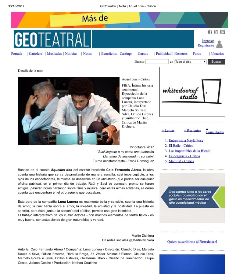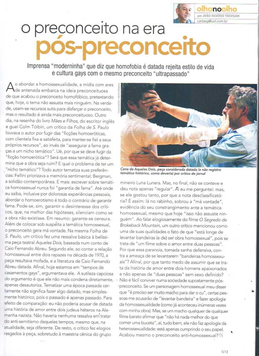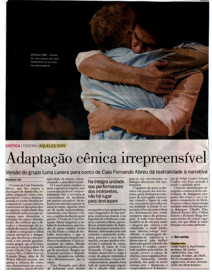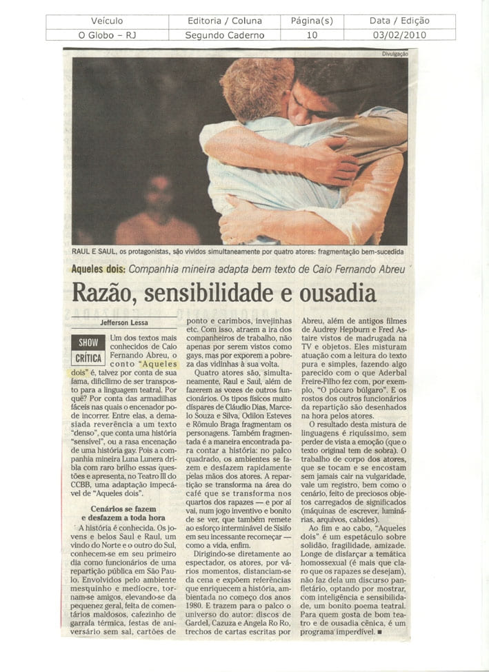 - Política, canção e teatro: o conto Aqueles Dois de Caio Fernando Abreu reverberando no cotidiano brasileiro. Peterson Nogueira.