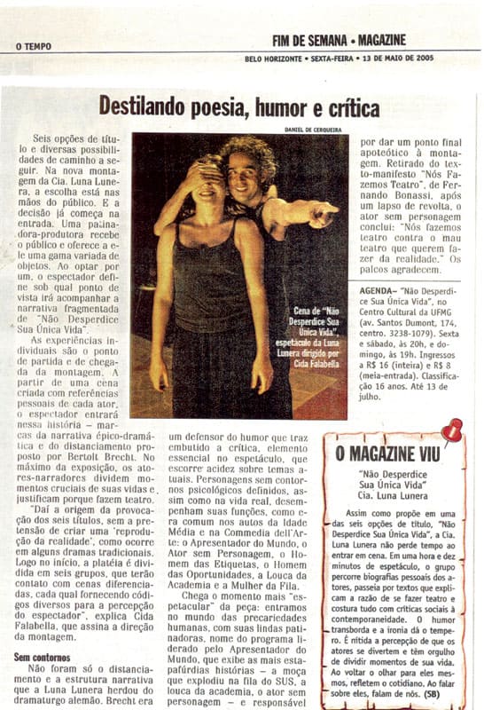A Cia. Luna Lunera foi fundada em 2001, na cidade de Belo Horizonte. Em 2026, a Cia. completa 25 anos de história. É uma referência na cena teatral mineira e brasileira. Investe em diversificados caminhos de criação por meio da pesquisa continuada e do diálogo com outros criadores contemporâneos do teatro, da dança, da música e das artes visuais.